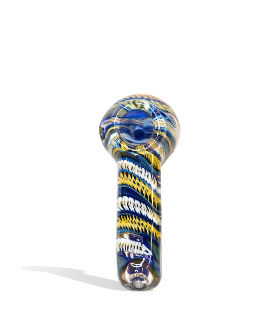 The 4-inch Double Glass Flat Sided Hand Pipe is a compact and visually captivating dry herb pipe with blue and yellow patterns. Crafted from durable borosilicate glass, this pipe incorporates a convenient carb hole on the left side, ensuring a smoother and clearer airflow while inhaling. It also boasts a deep bowl for ample herb packing. With its traditional 4-inch size, this pipe perfectly balances portability and functionality, making it an ideal companion for on-the-go adventures.